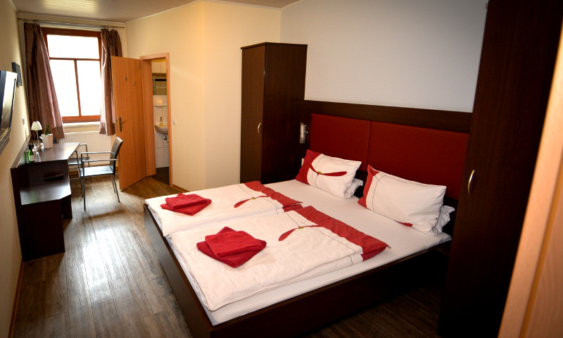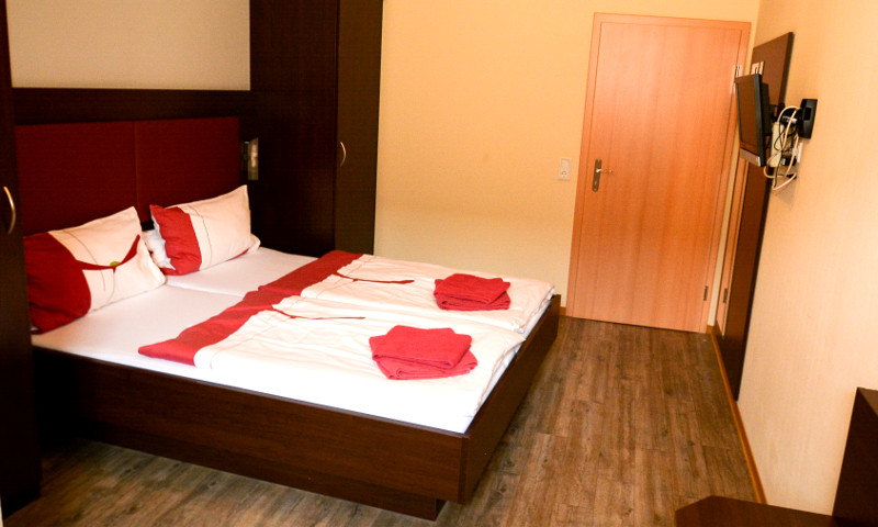 - Alle Zimmer sind mit Doppelbetten (1,60 m x 2,00 m) ausgestattet.