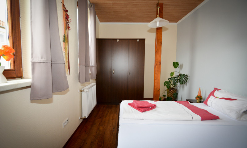 - Alle Wohnungen sind mit Doppelbetten (1,60 m x 2,00 m) ausgestattet.